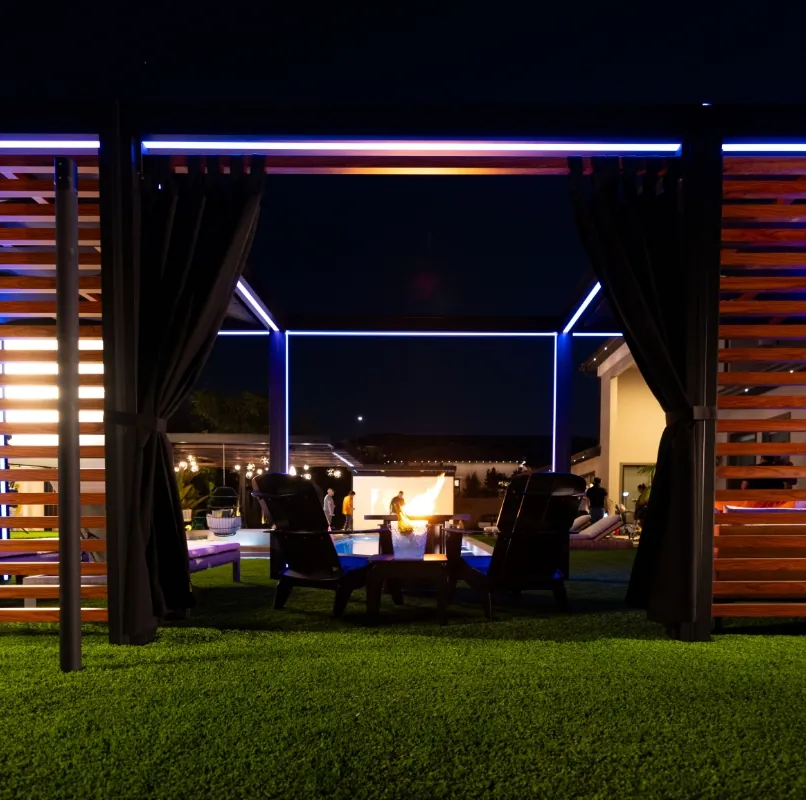 Take your outdoor space to the next level in Nashville with premium pergola accessories that blend comfort, ambiance, and innovation. Every detail is designed to enhance your lifestyle in Nasville, from dimmable pergola LED lighting and built-in sound systems to heaters, fans, and motorized screens.