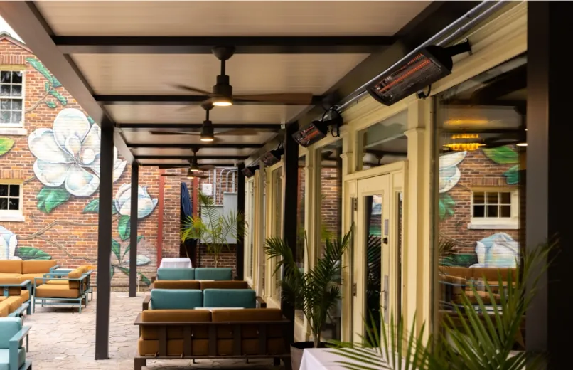 - Discreet heaters to keep patios cozy in cooler months