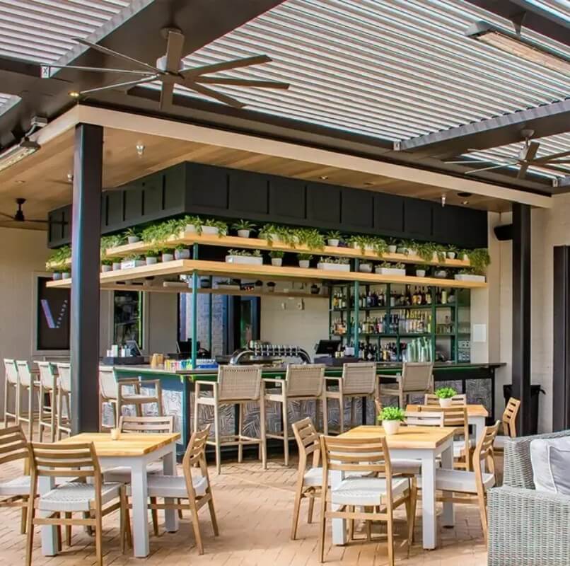 Create an outdoor space that delights guests through the fall and winter with a louvered pergola for your Nashville business.